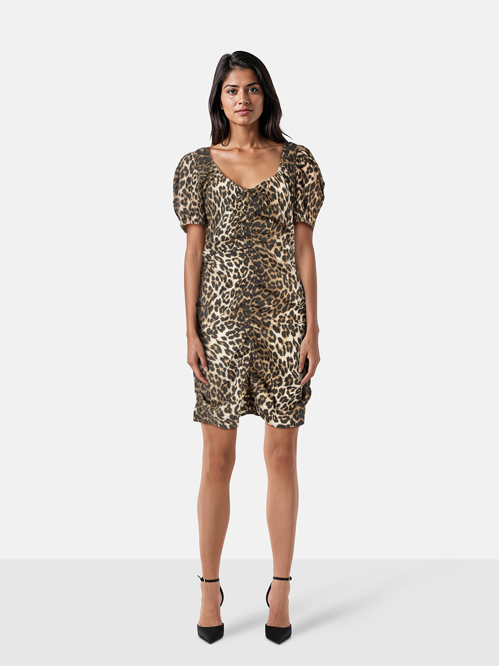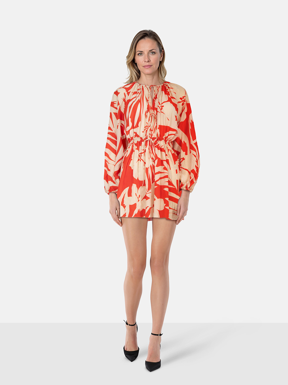 Matteau Red Silk Leaf Print Long Sleeve Dress