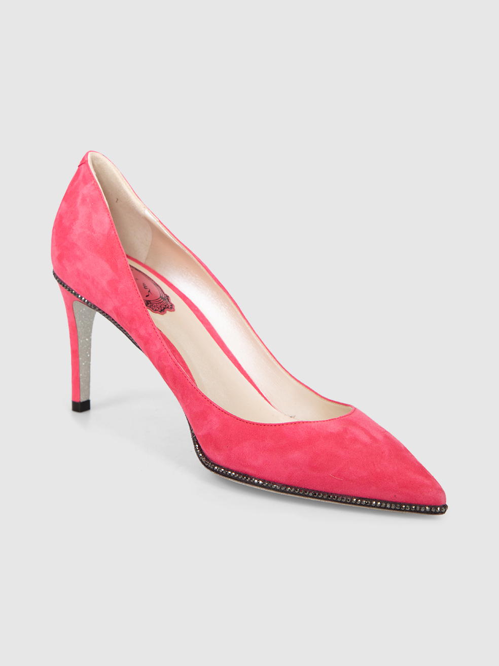 Rene Caovilla Pink Suede Crystal Detail Pumps