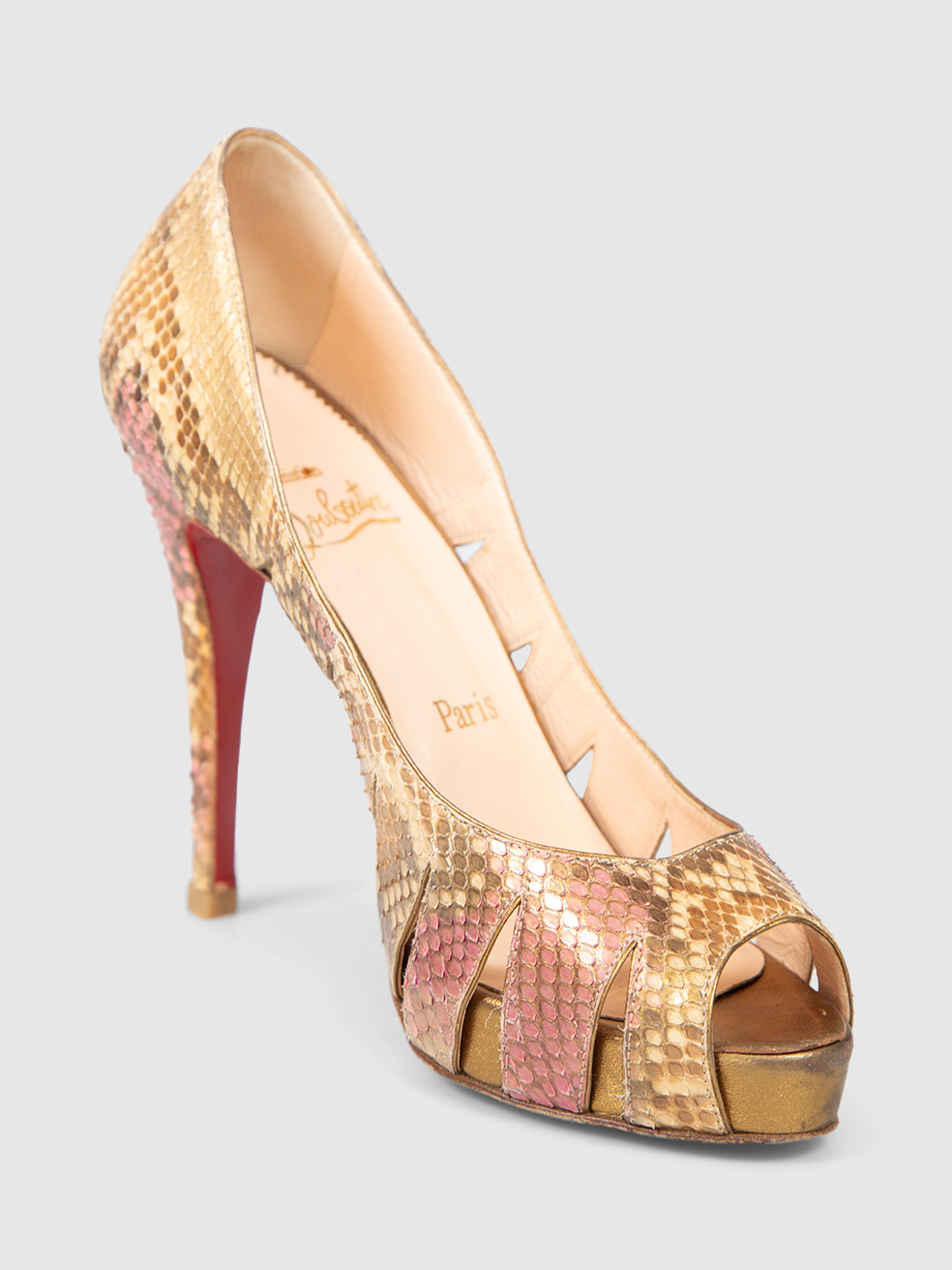 Christian Louboutin Snakeskin Cut Out Peep To...