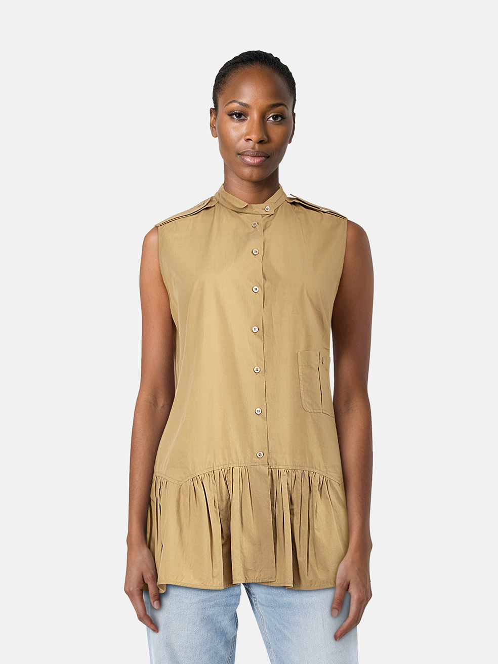 Miu Miu Brown Sleeveless Gathered Hem Blouse