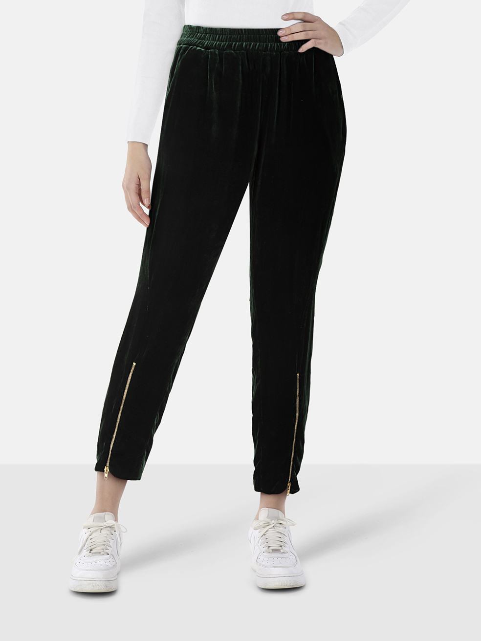 Sandro Green Velvet Slim Zipped Cuff Trousers