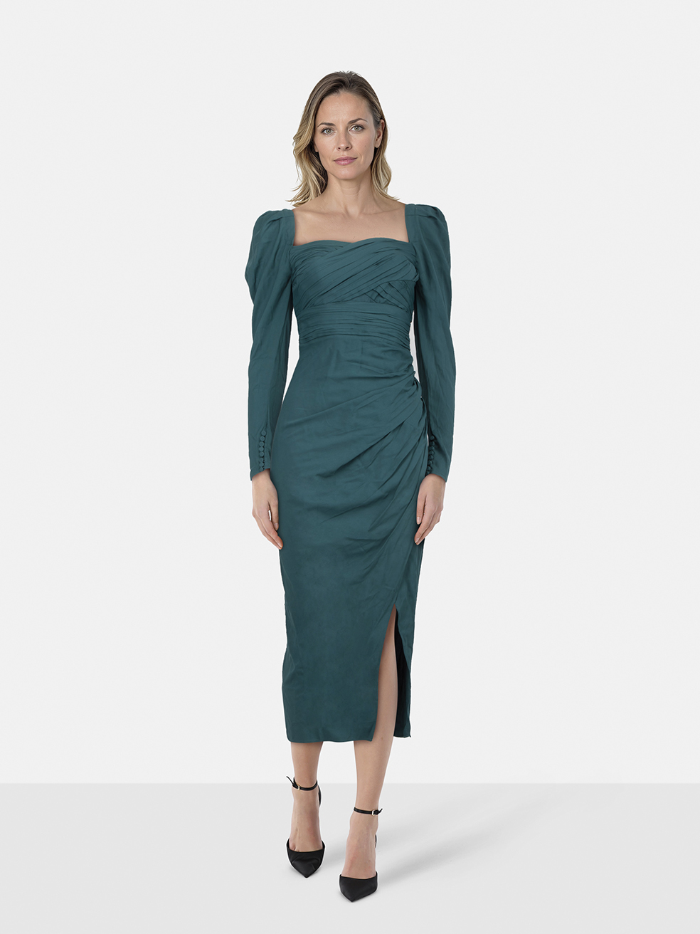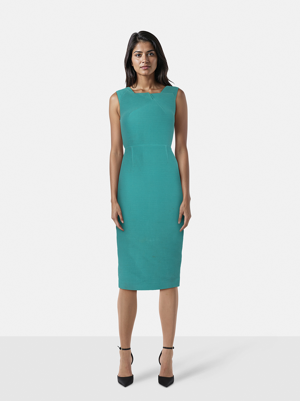 Self-Portrait Teal Sweetheart Neckline Midi D...