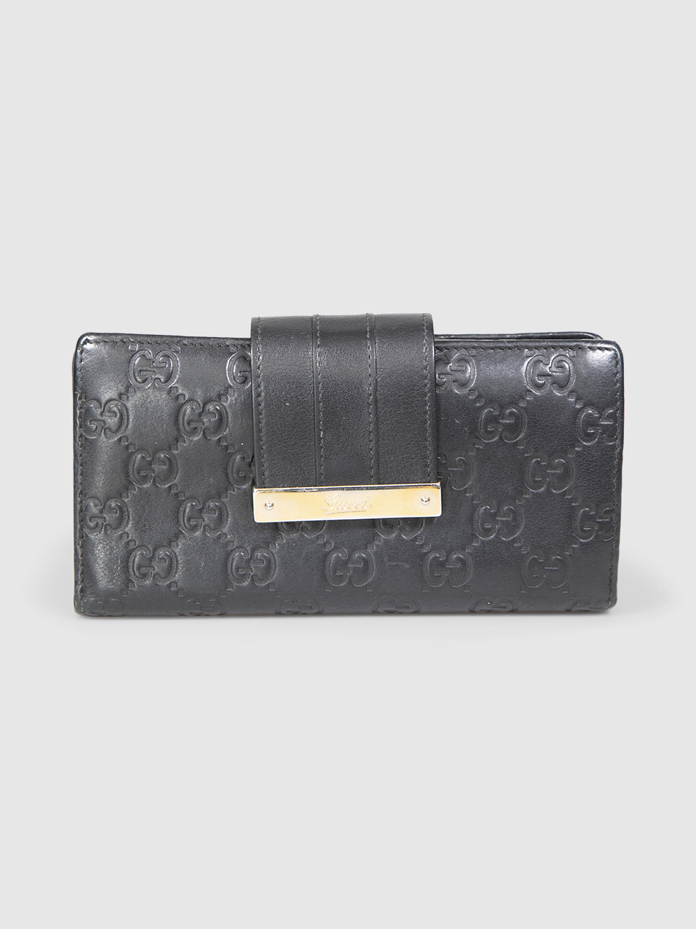 Gucci Black Leather Embossed Monogram Wallet