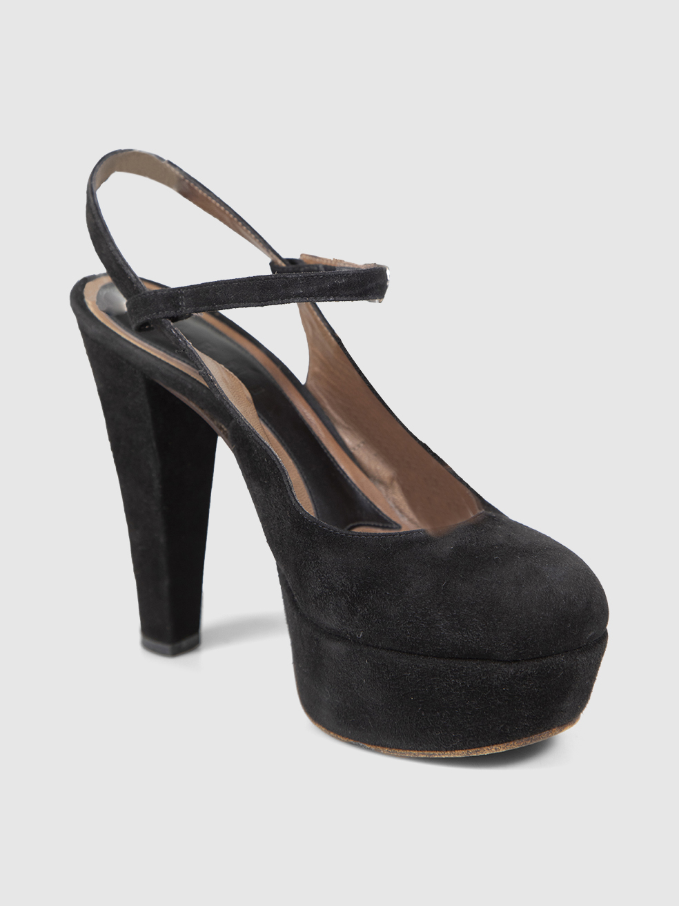 Marni Black Suede Platform Ankle Strap Heels