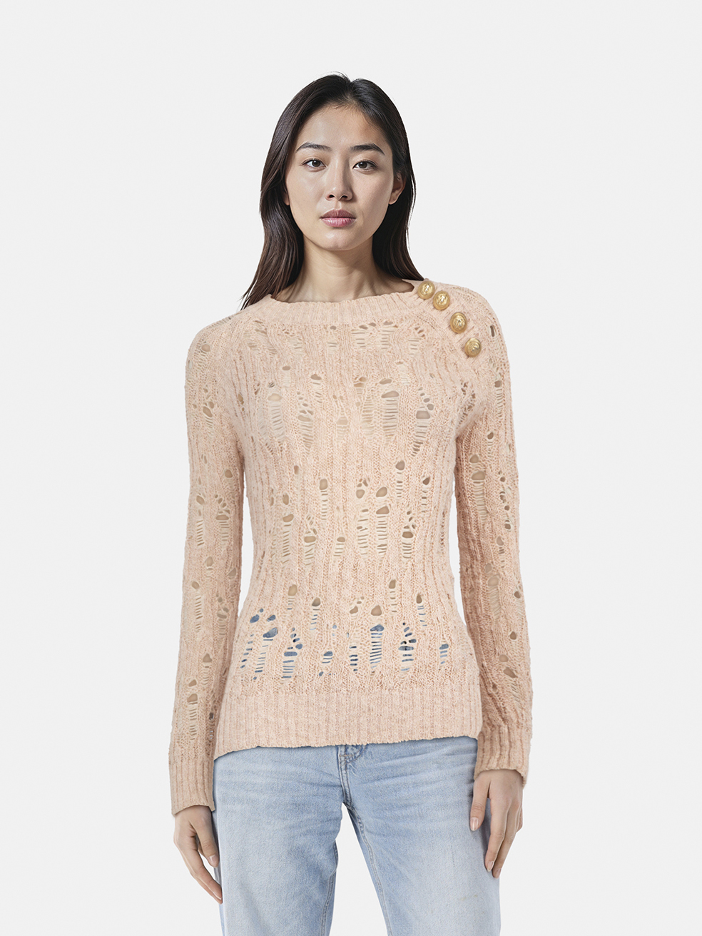 Balmain Pink Sheer Long Sleeve Sweater