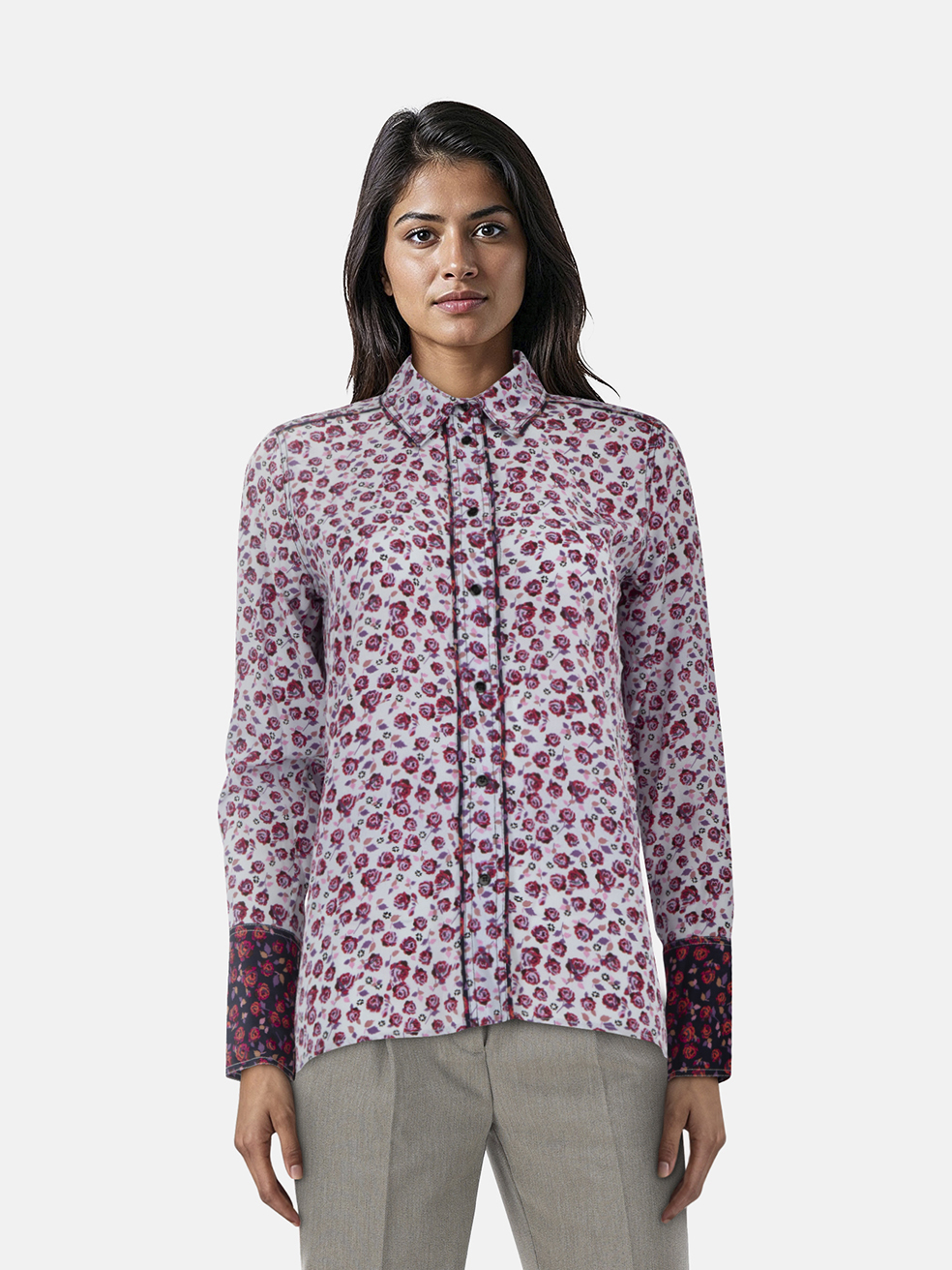Sandro Purple Silk Rose Print Button Up Shirt