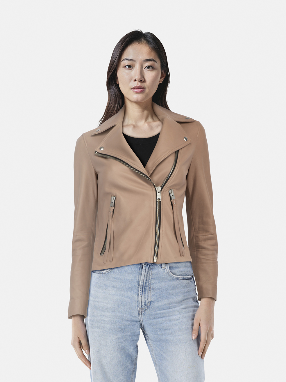 All Saints Pink Leather Dalby Biker Jacket