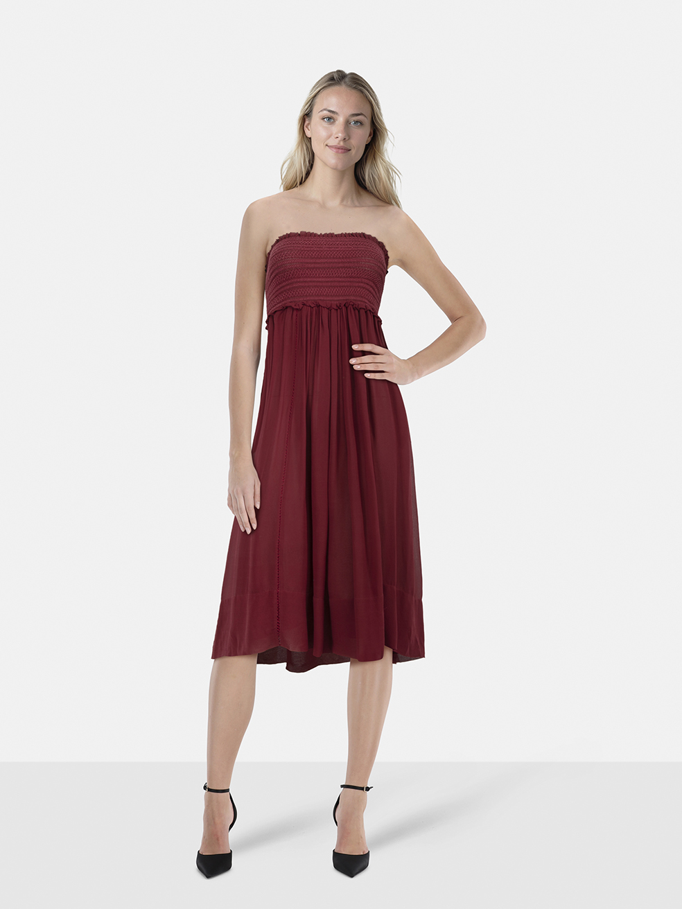 Isabel Marant Burgundy Strapless Silk Dress