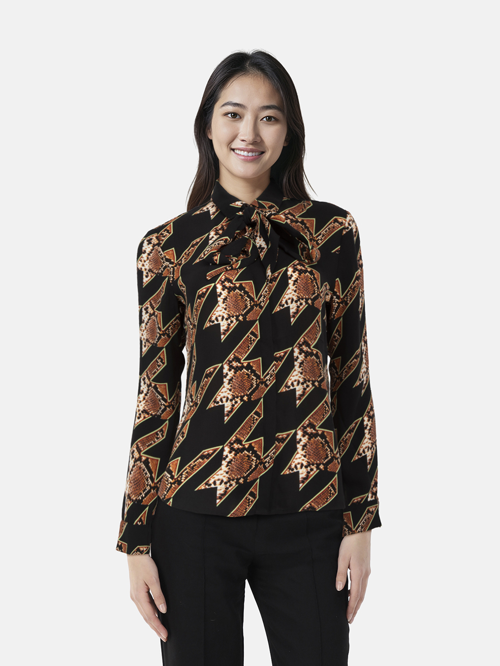 Vince Snakeskin & Houndstooth Print Blouse