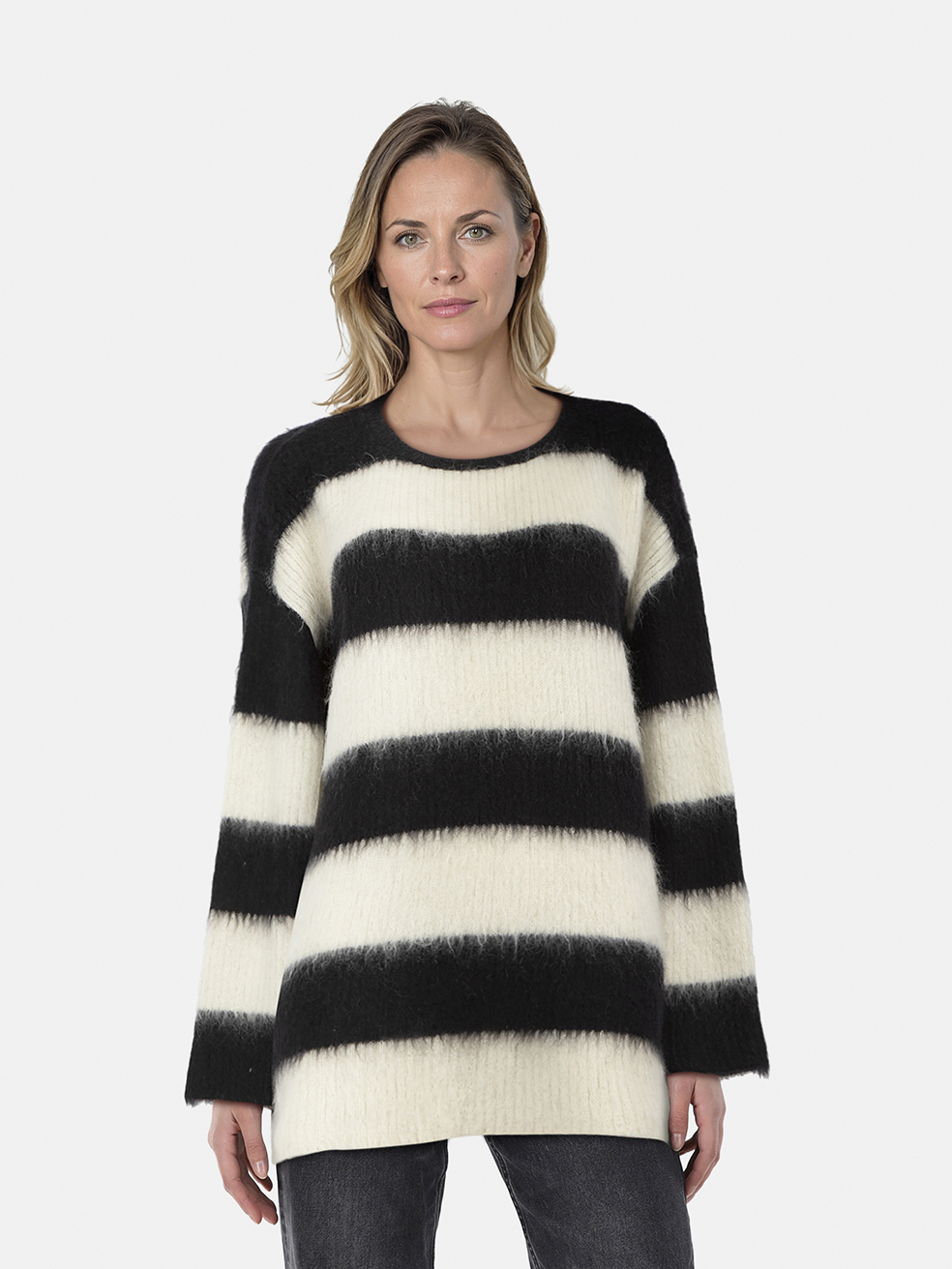 Valentino Garavani Black & White Mohair Strip...