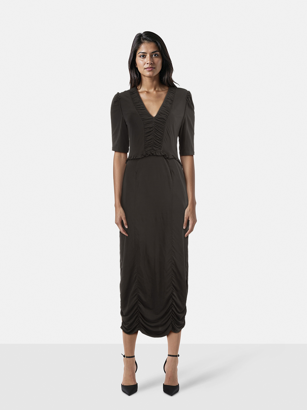Burberry Black Ruched Stretchy Midi Dress