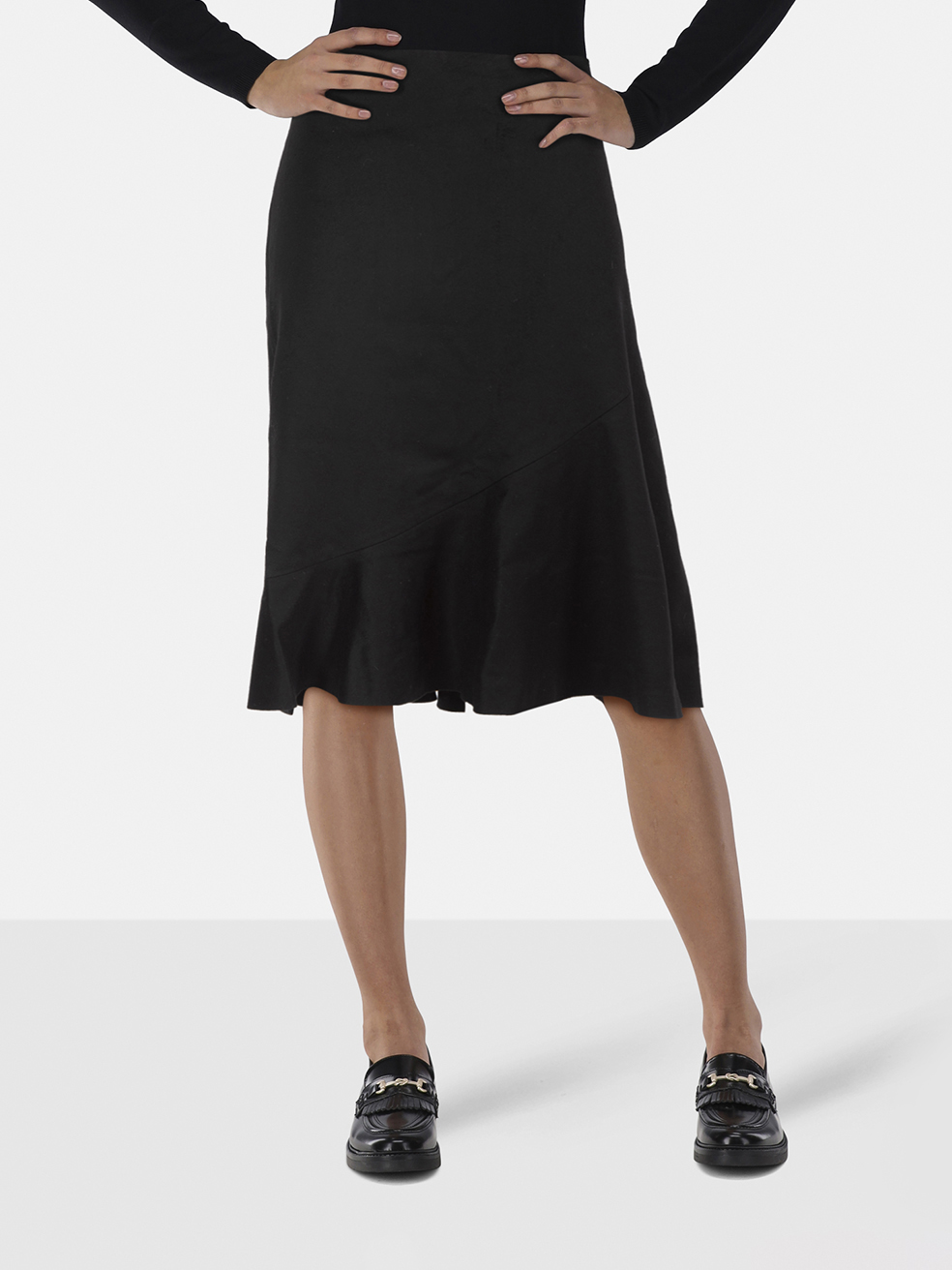 Nicole Farhi Black Wool Flared Hem Skirt