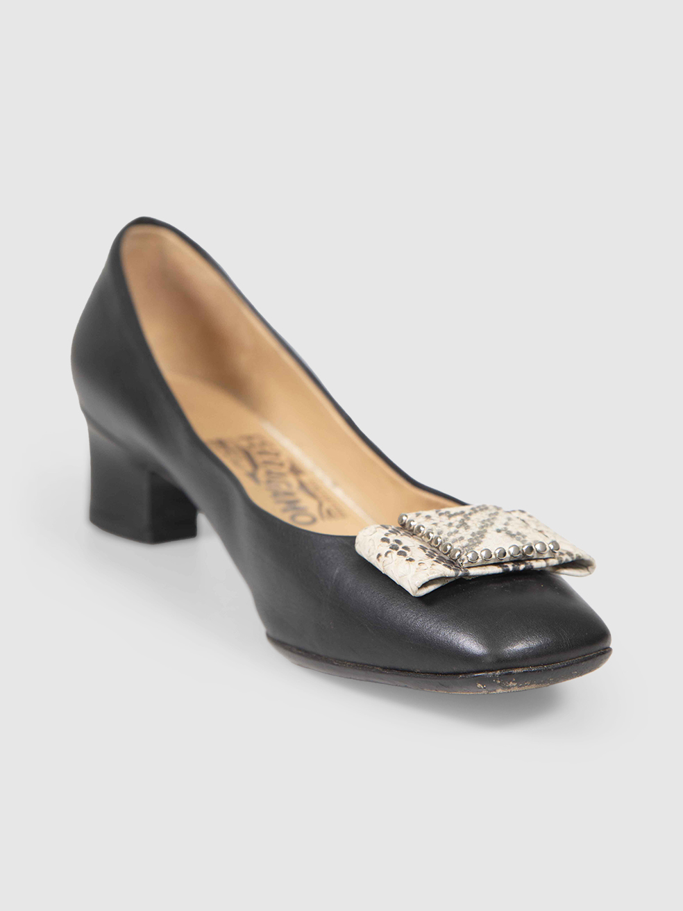 Salvatore Ferragamo Black Leather Snake Bow P...