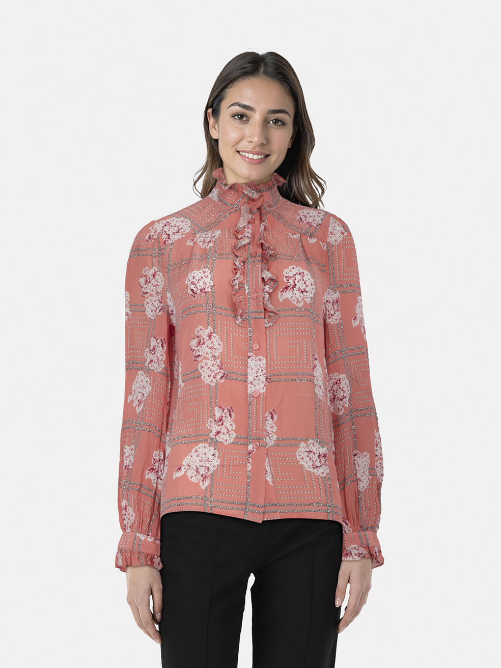 Gucci Pink Silk Floral Ruffle Blouse