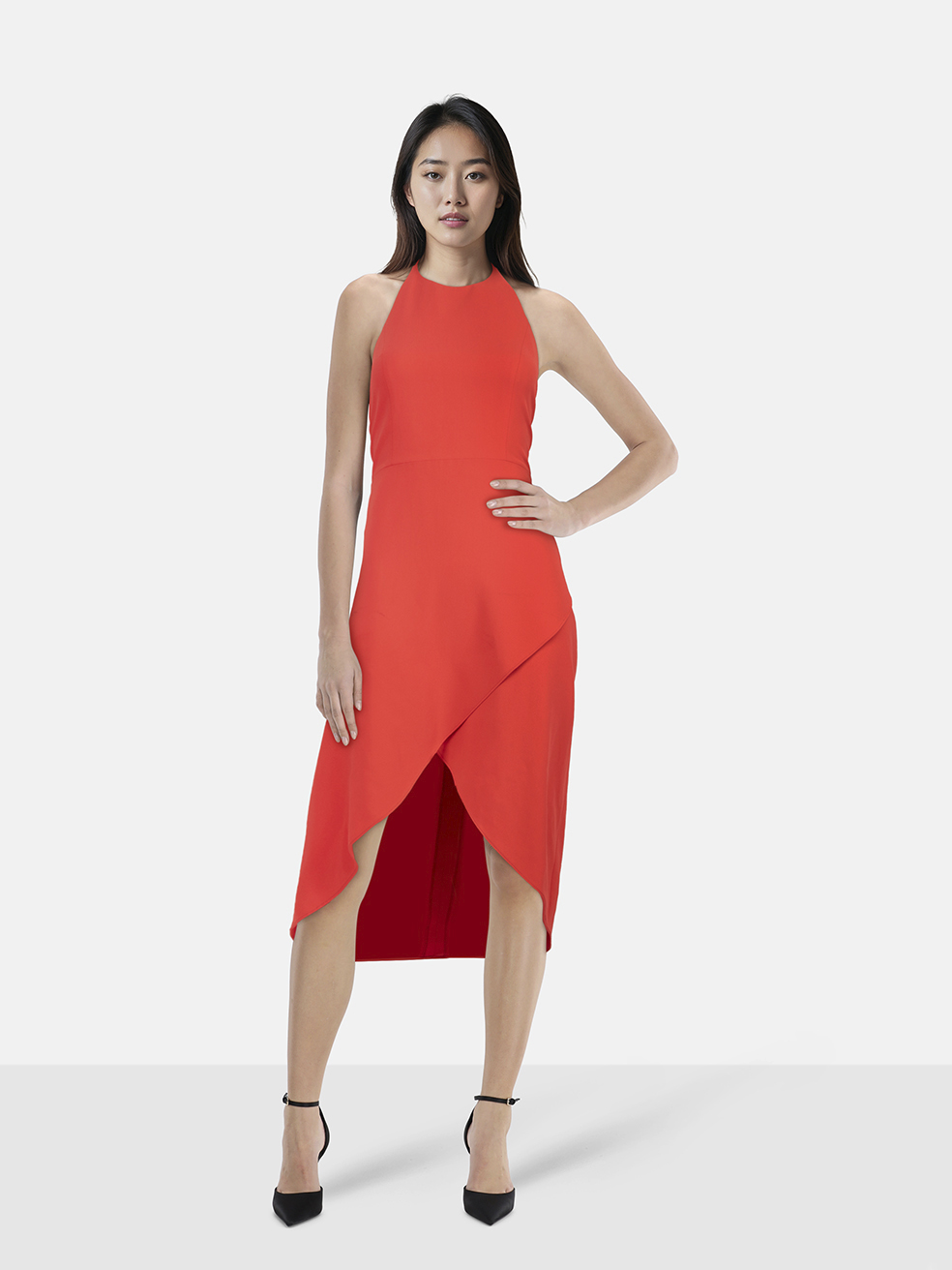 Alice + Olivia Red Midi Halterneck Dress