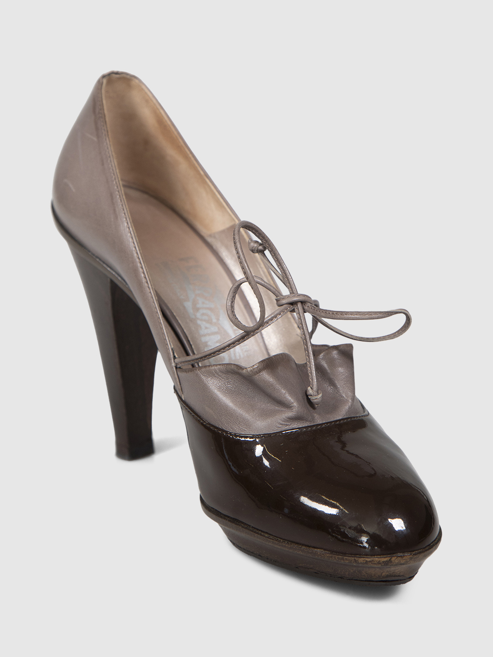 Salvatore Ferragamo Brown Leather Bow Detail...