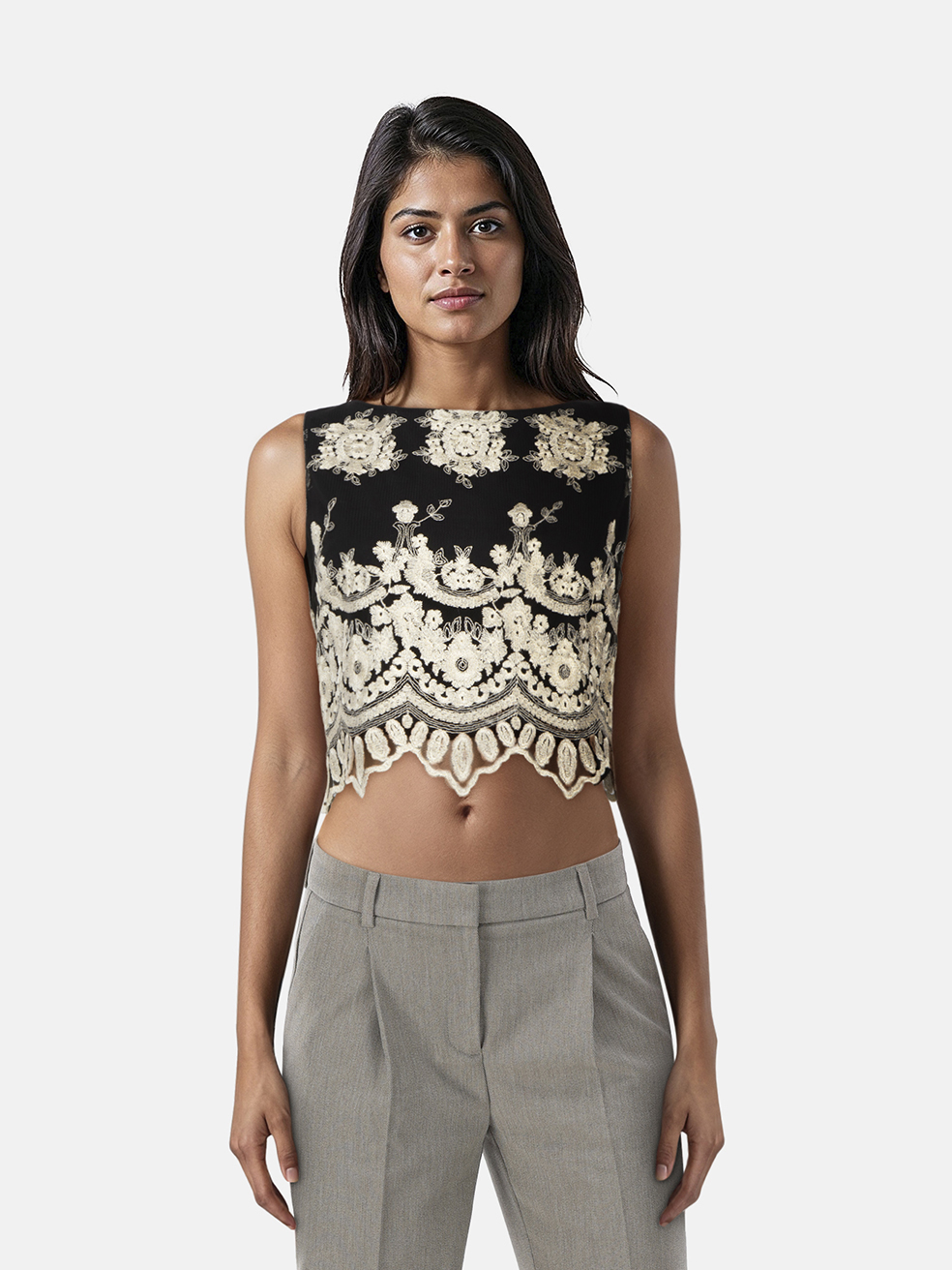 Alice + Olivia Black & Gold Floral Sleeveless...