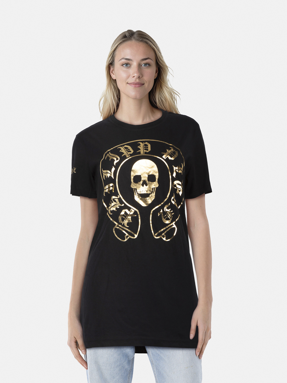 Philipp Plein Black & Gold Skull Print T-Shir...