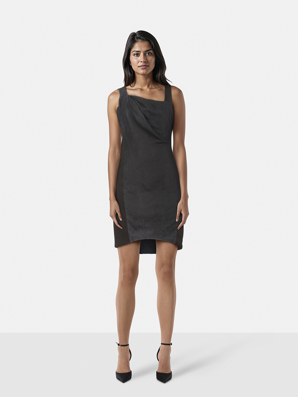 Helmut Lang Denim Panelled Asymmetric Dress