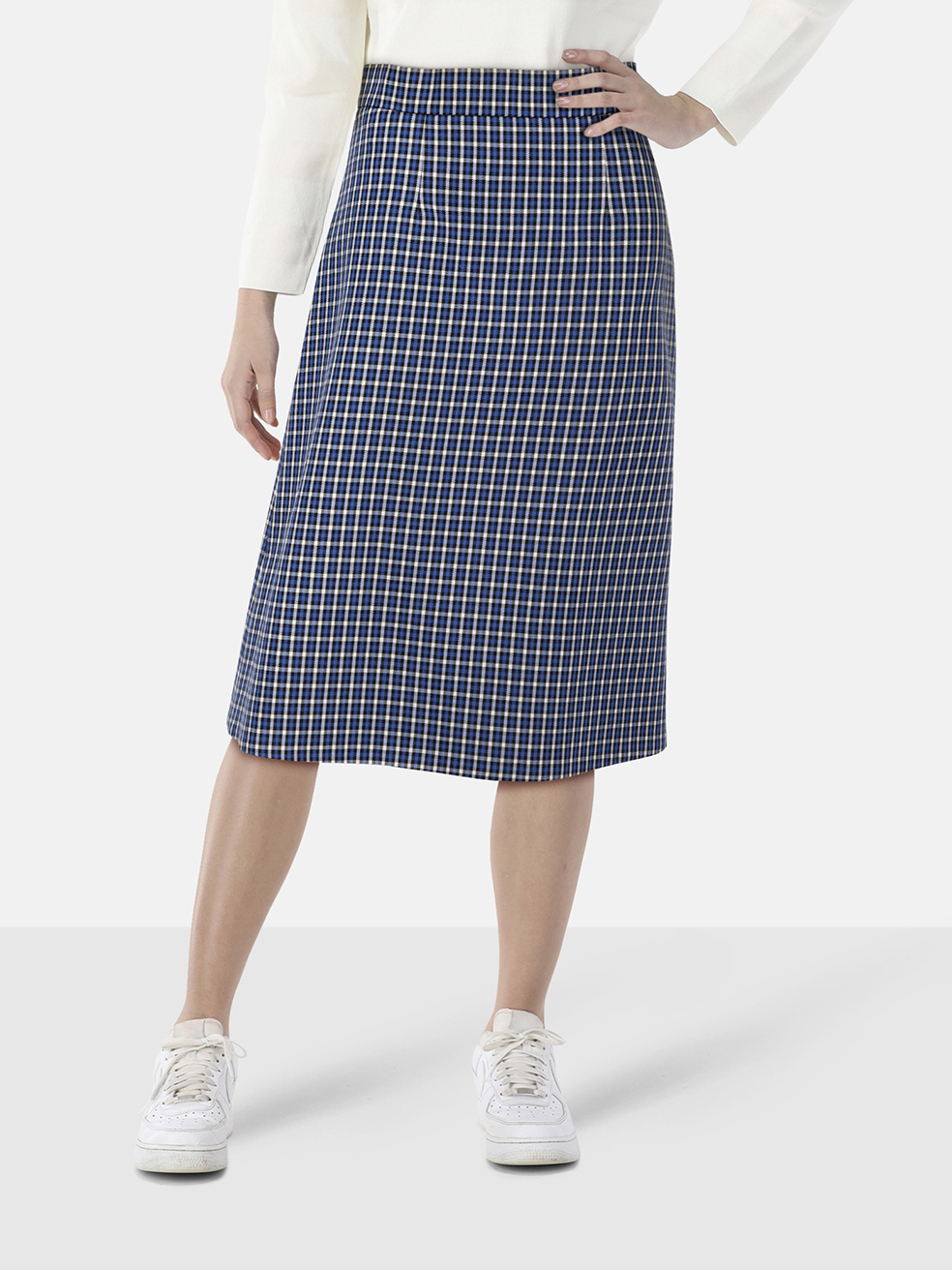 Marni Blue Tartan Wool Midi A-Line Skirt