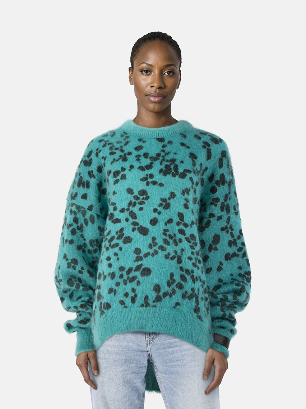 Versace Teal Leopard Print Knit Sweater