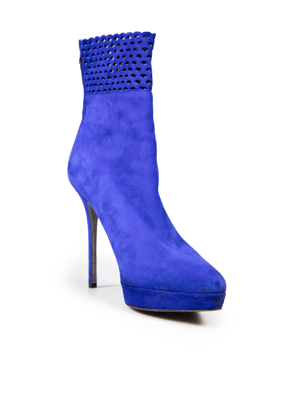 Sergio Rossi Blue Suede Cut Out Ankle Boots
