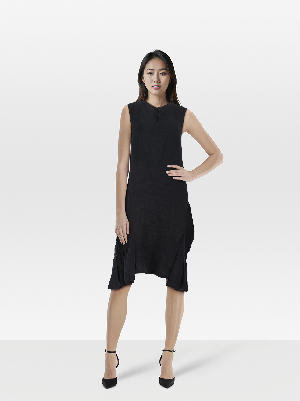 Yohji Yamamoto Y's Navy Linen Pleated Trim Mi...