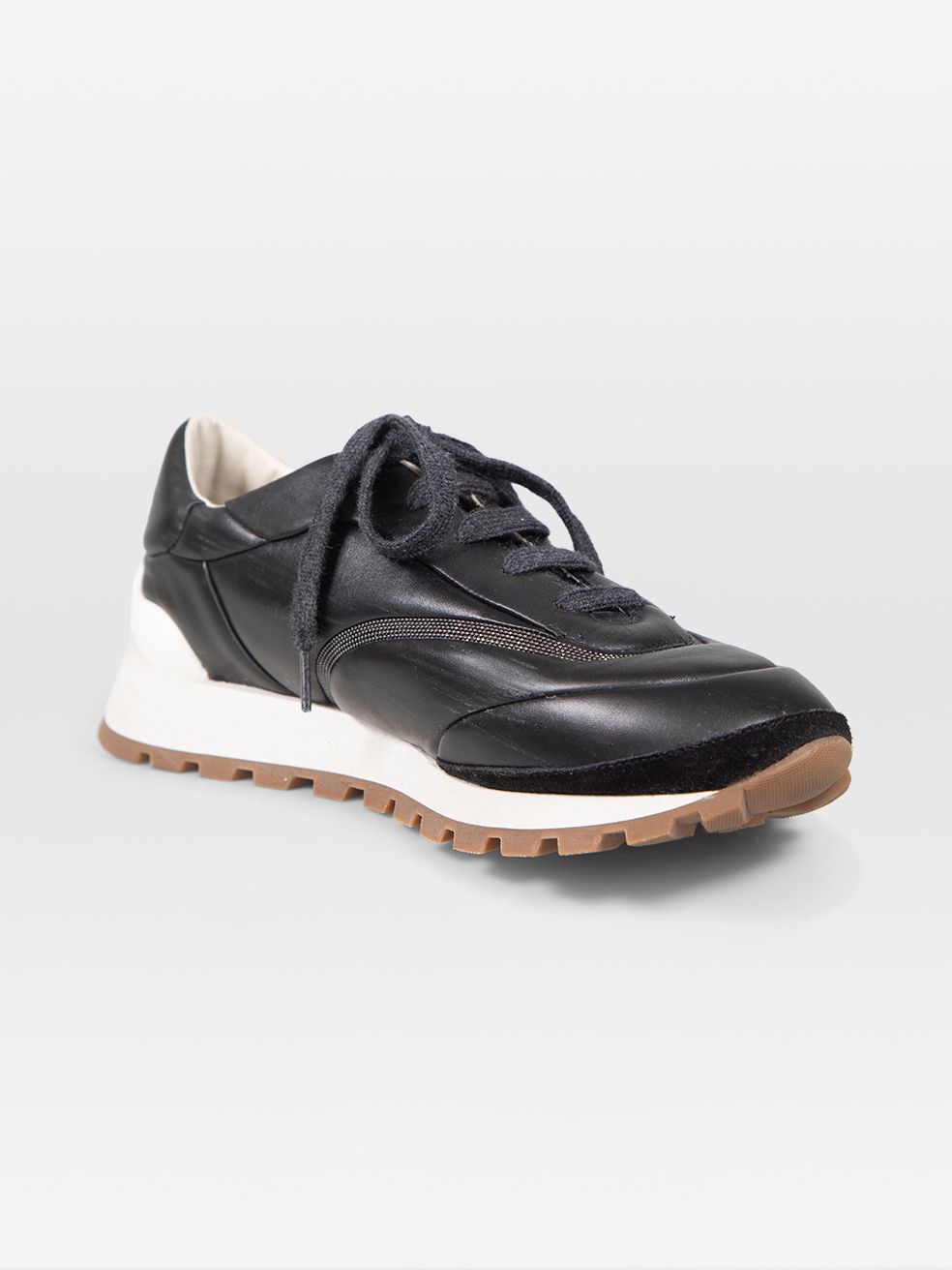 Brunello Cucinelli Black Monili-Chain Trainer...
