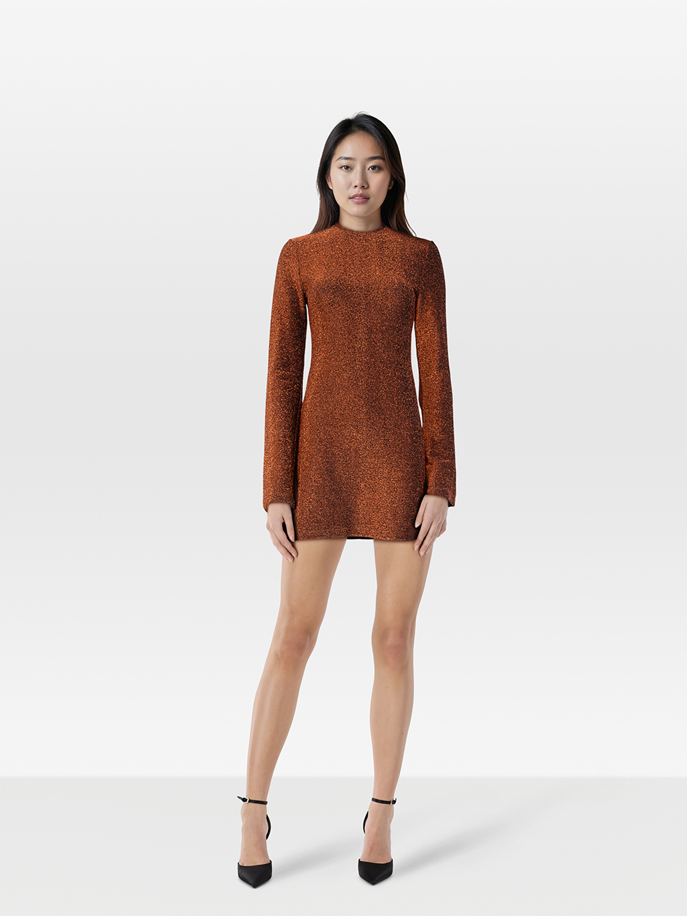 Johanna Ortiz Orange Metallic Long Sleeve Dre...