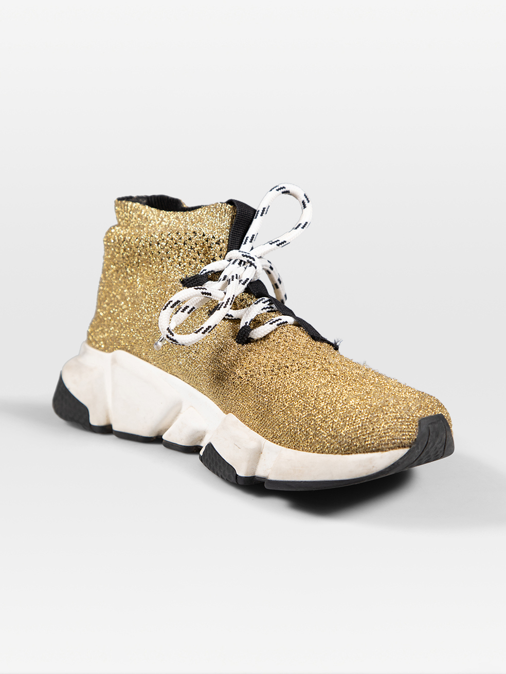 Balenciaga Gold Metallic Speed Lace Up Traine...