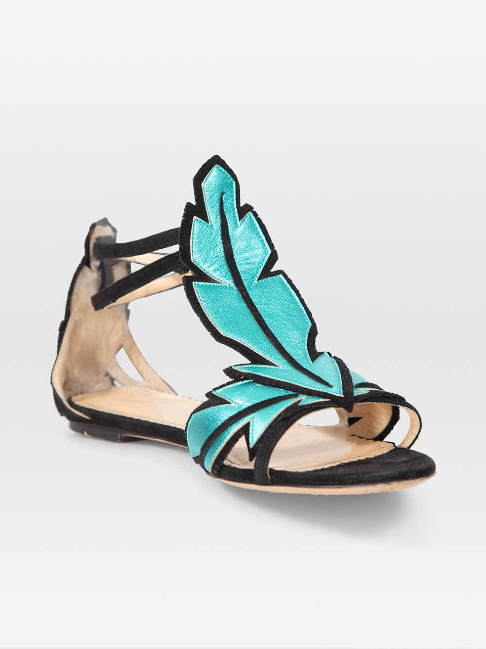 Charlotte Olympia Turquoise Leaf Leather Sand...
