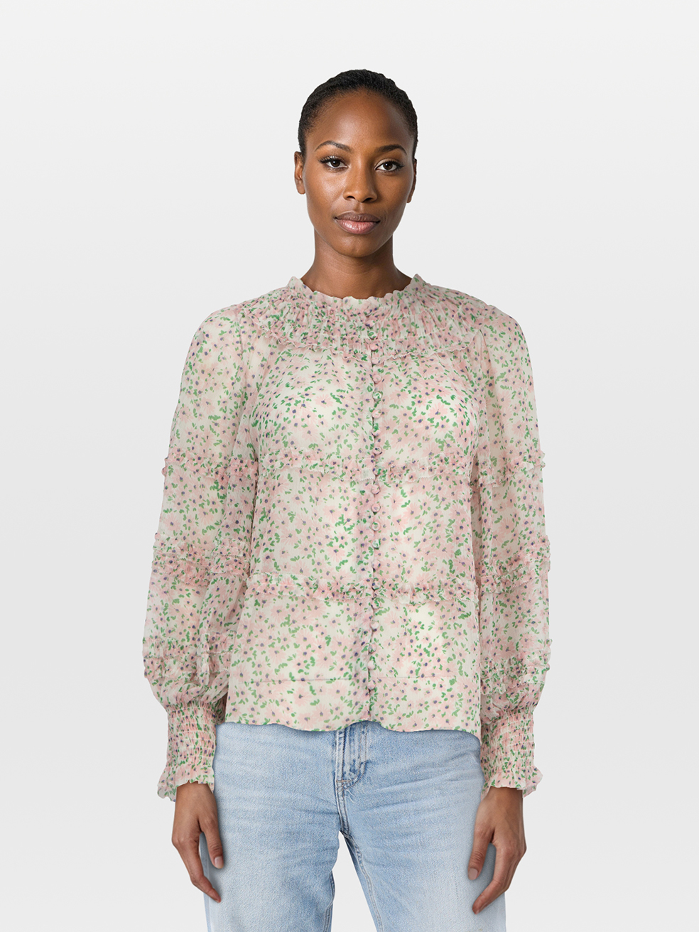 Alice + Olivia Floral Printed Sheer Blouse