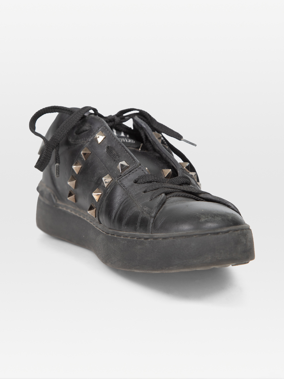 Valentino Garavani Black Leather Rock Stud Tr...