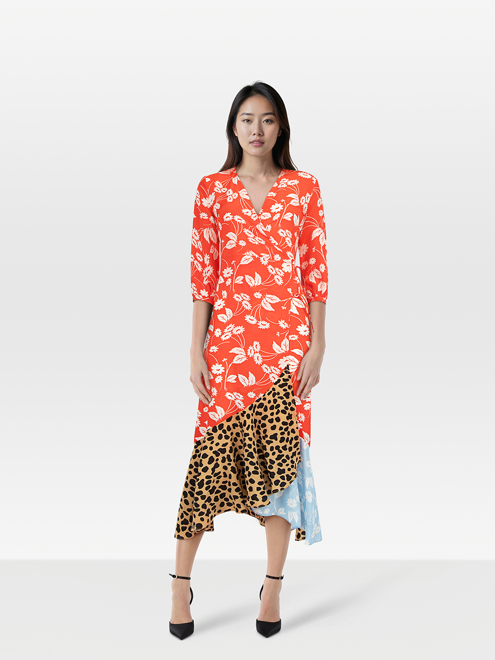 Rixo Red Silk Floral Pattern Wrap Dress