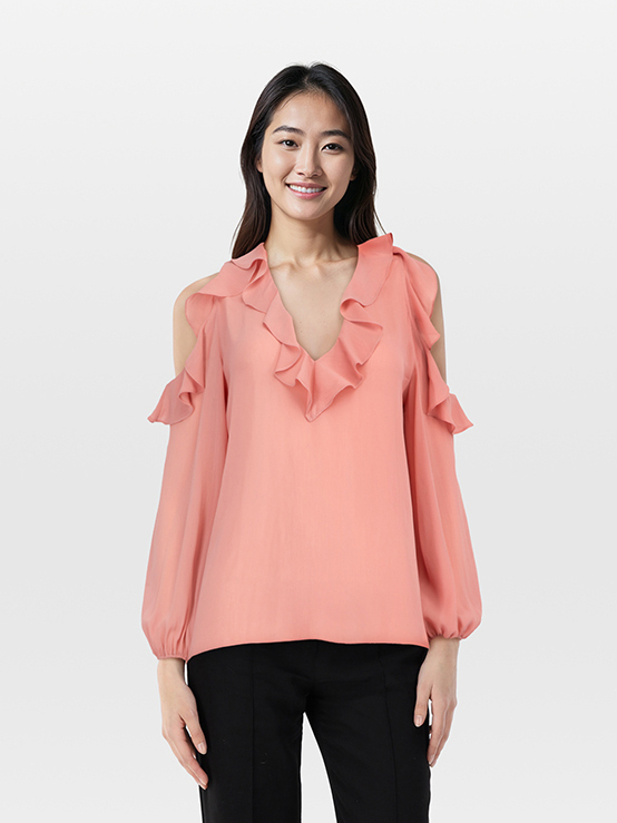 Alice + Olivia Pink Ruffle Long Sleeves Blous...
