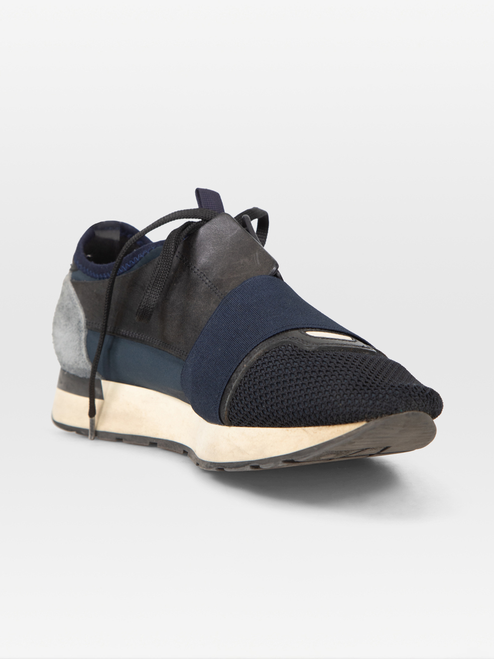 Balenciaga Navy Leather & Suede Race Runner T...