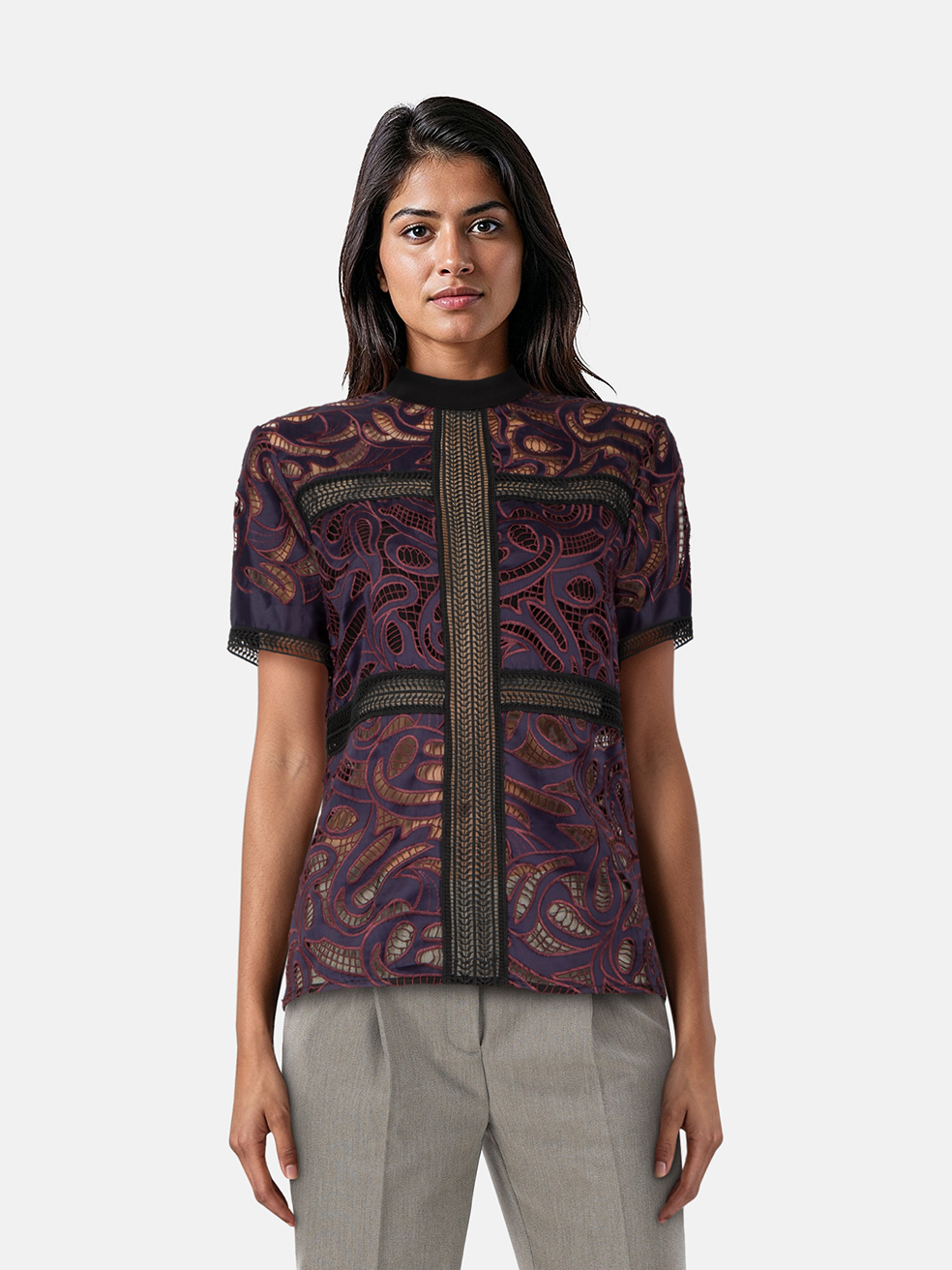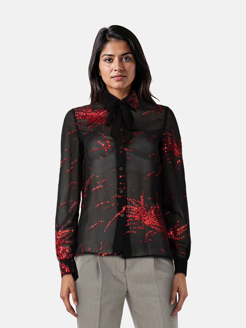 Miu Miu Black Sheer Tinsel Detail Blouse