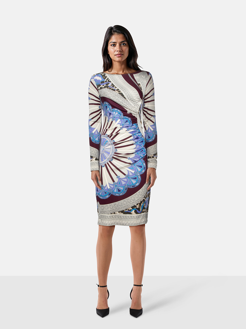 Emilio Pucci Abstract Pattern Ruched Silk Dre...