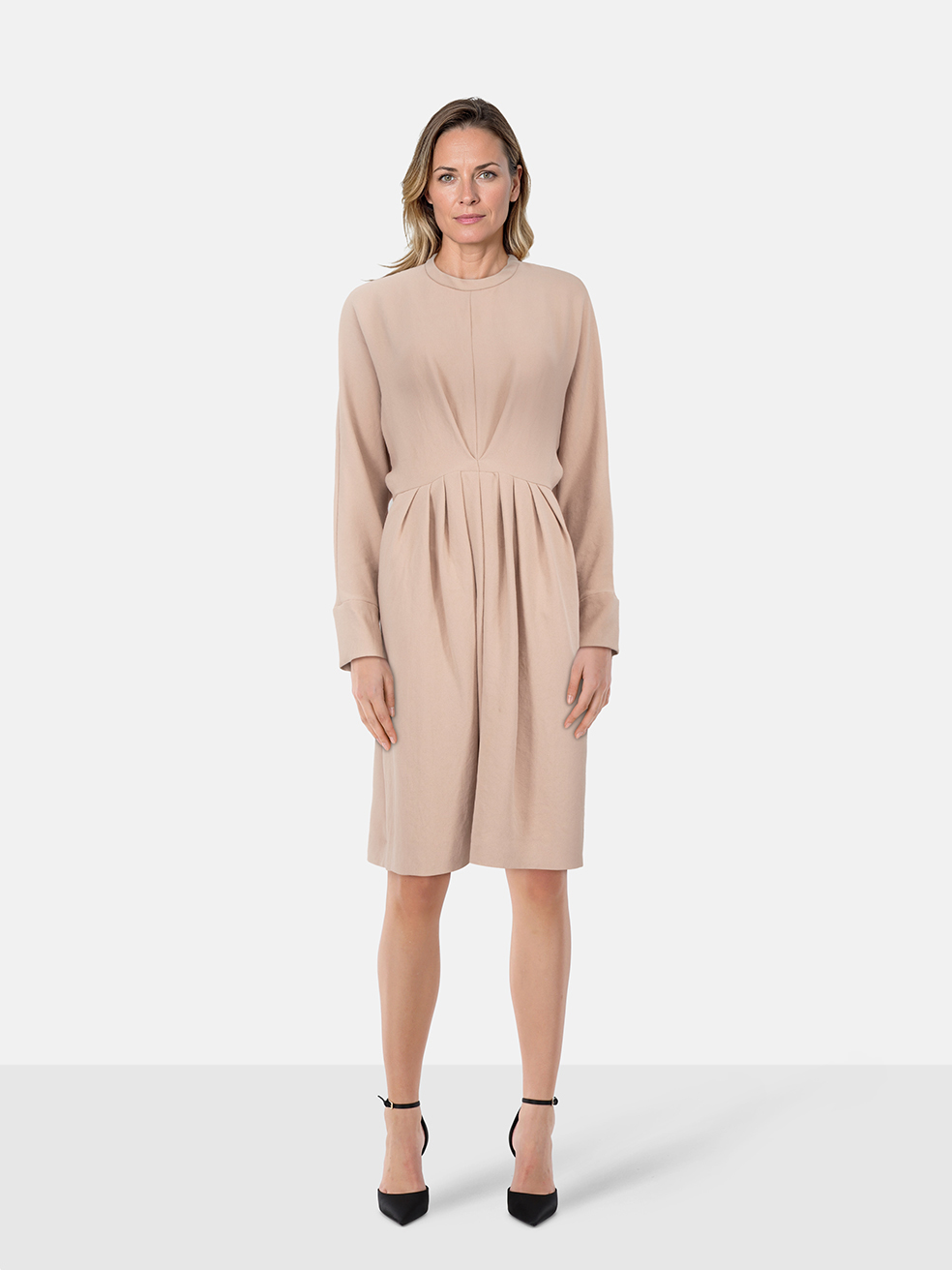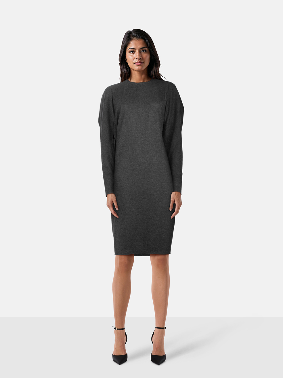 Lanvin Grey Long Sleeve Knee Length Wool Dres...