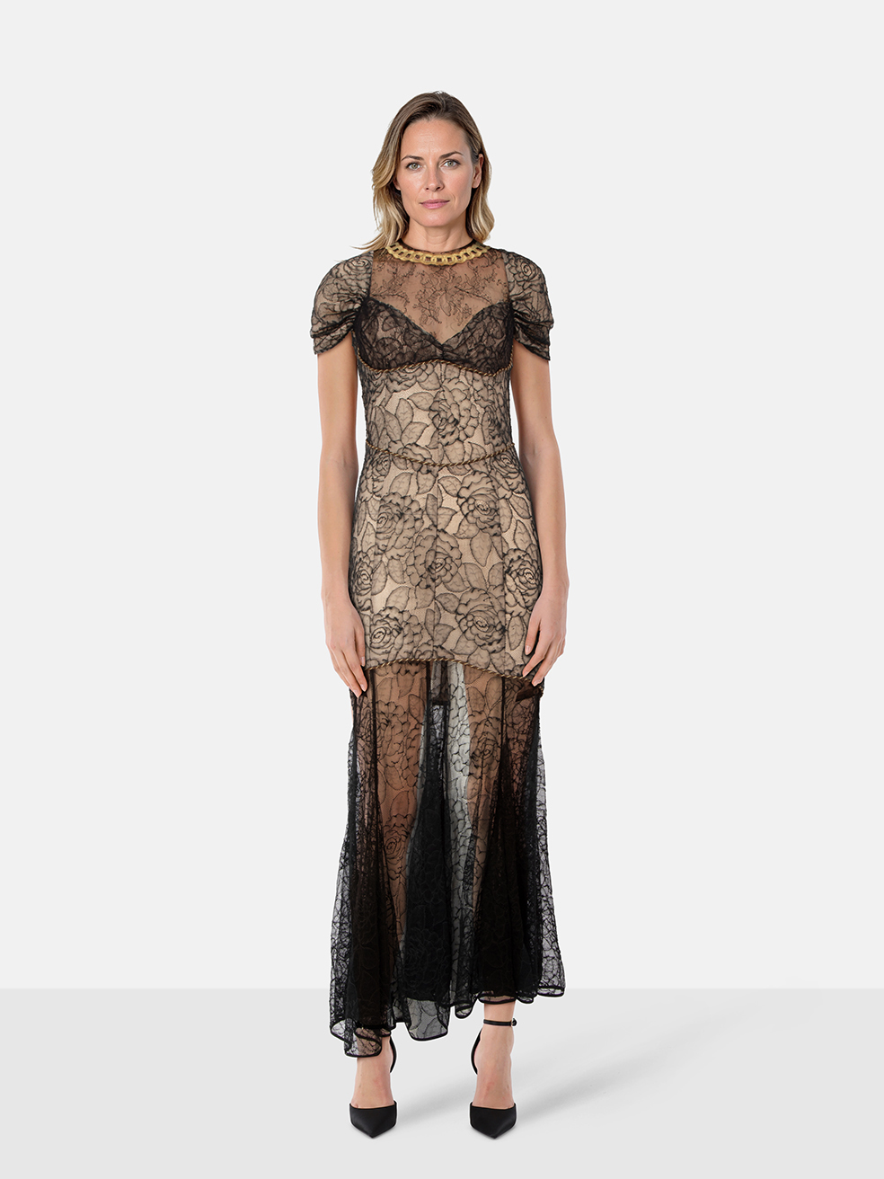 Alessandra Rich Black & Beige Lace Sheer Dres...