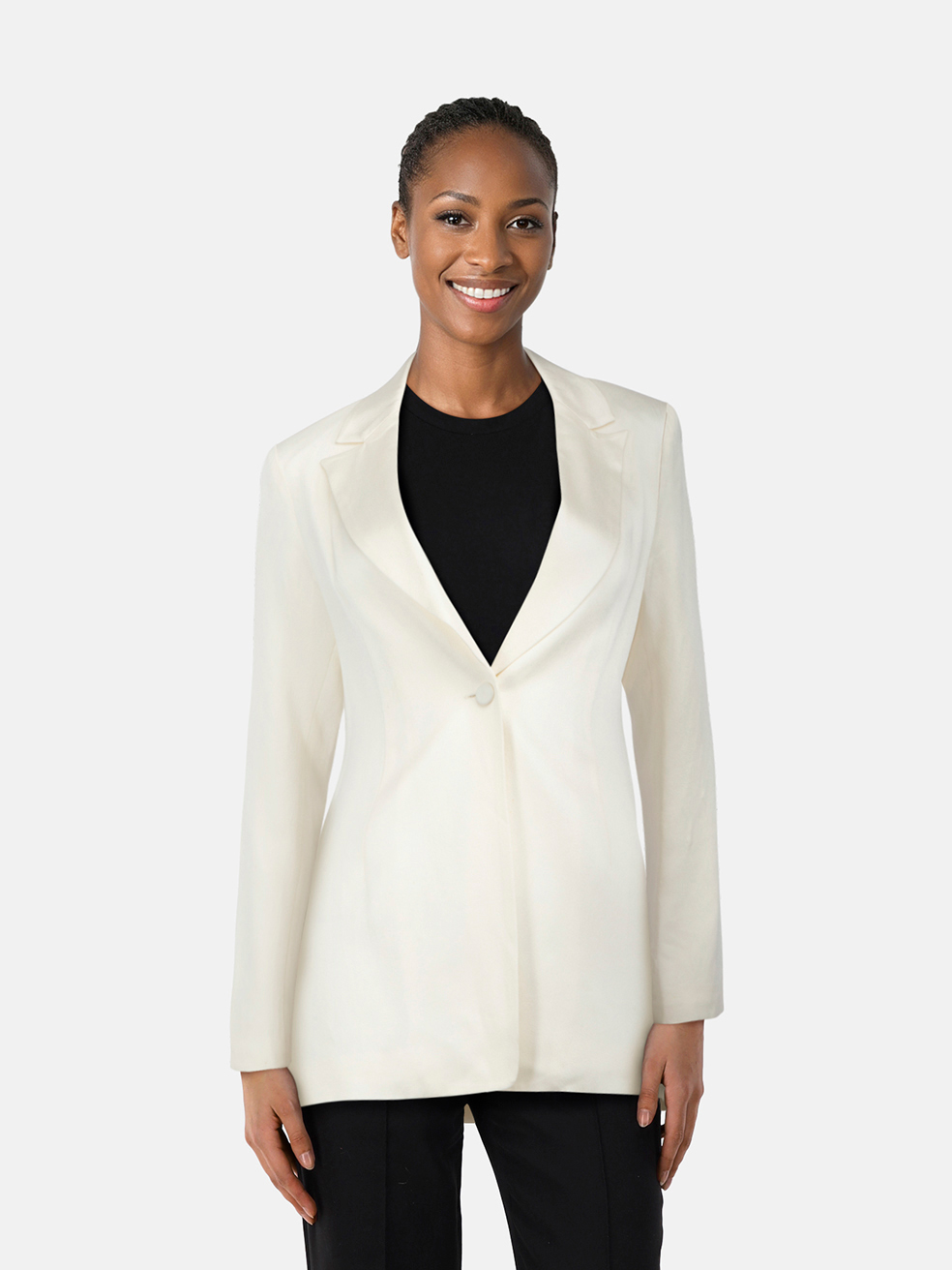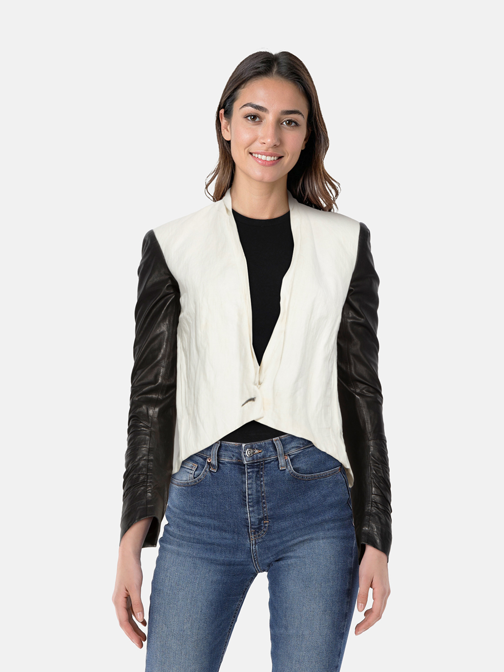 Helmut Lang Ecru & Black Leather Sleeves Blaz...